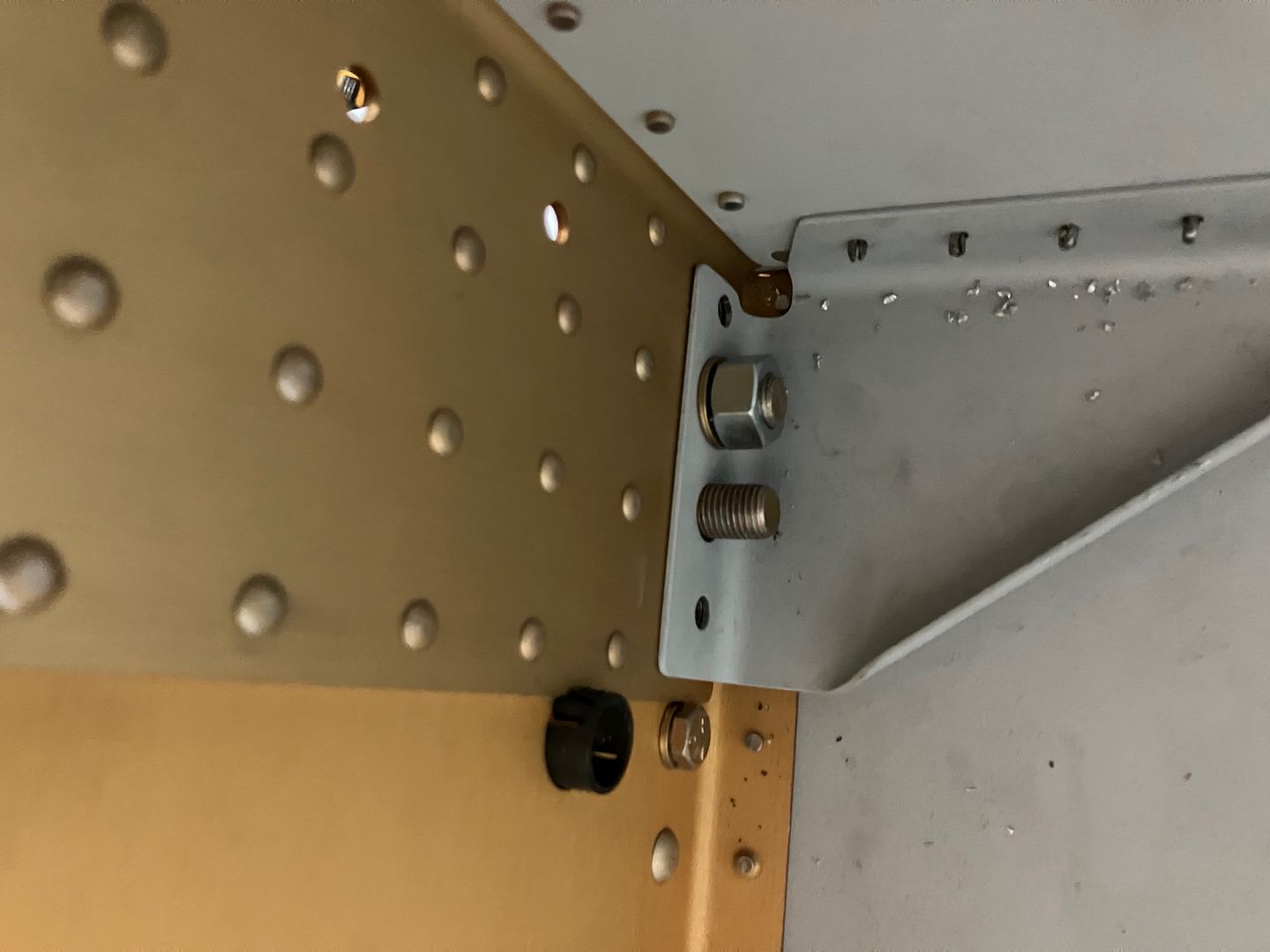 First, I drilled the F-7114 fuselage gussets. They are installed instead of the gear mounts of the tricycle gear. It was nothing too special, just putting the gussets in place, fastening the wing bolts temporarily, and then drilling the gussets to the fuselage.