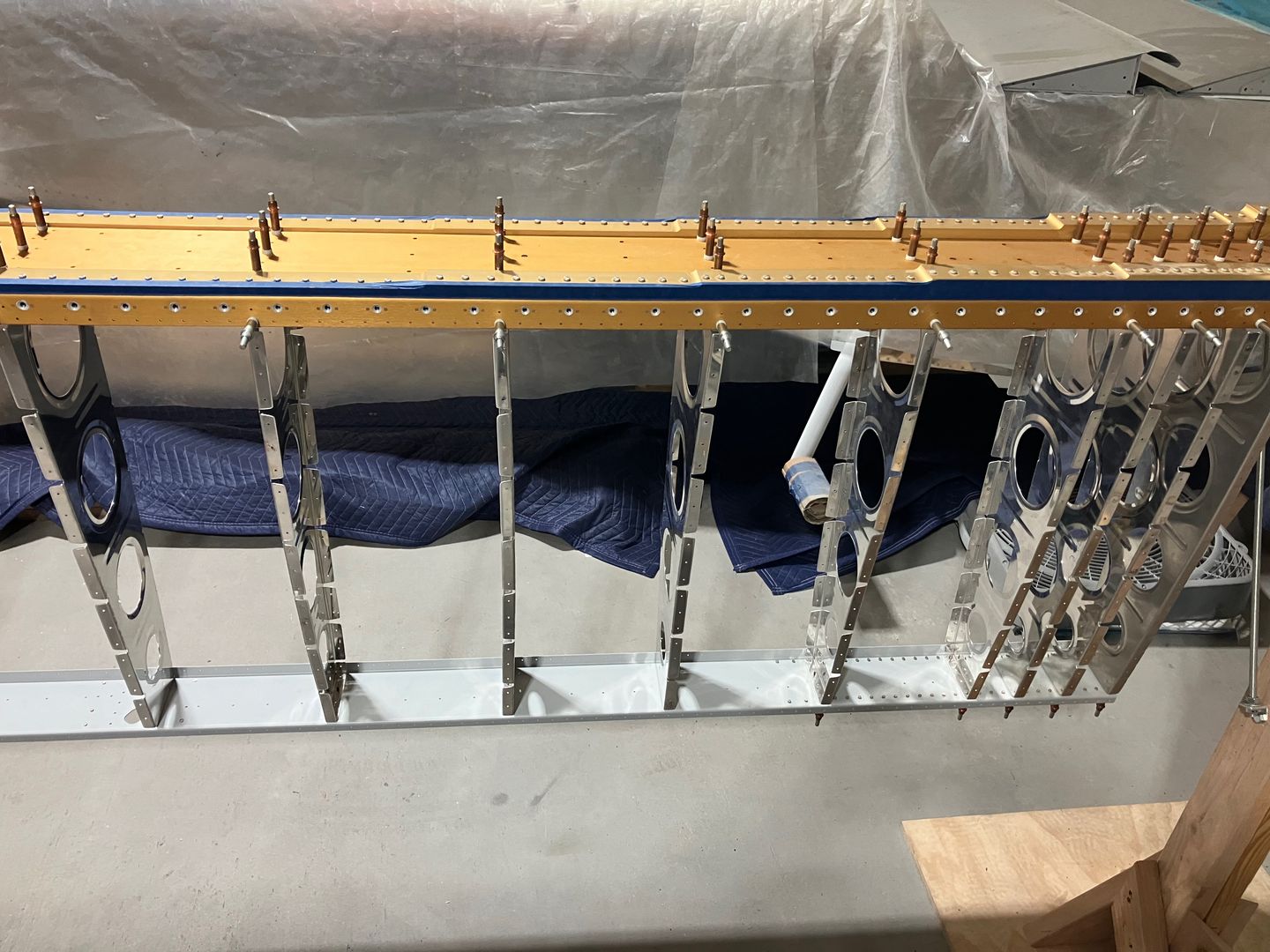 And then I mounted all the ribs and spars on the stand. The left-wing: