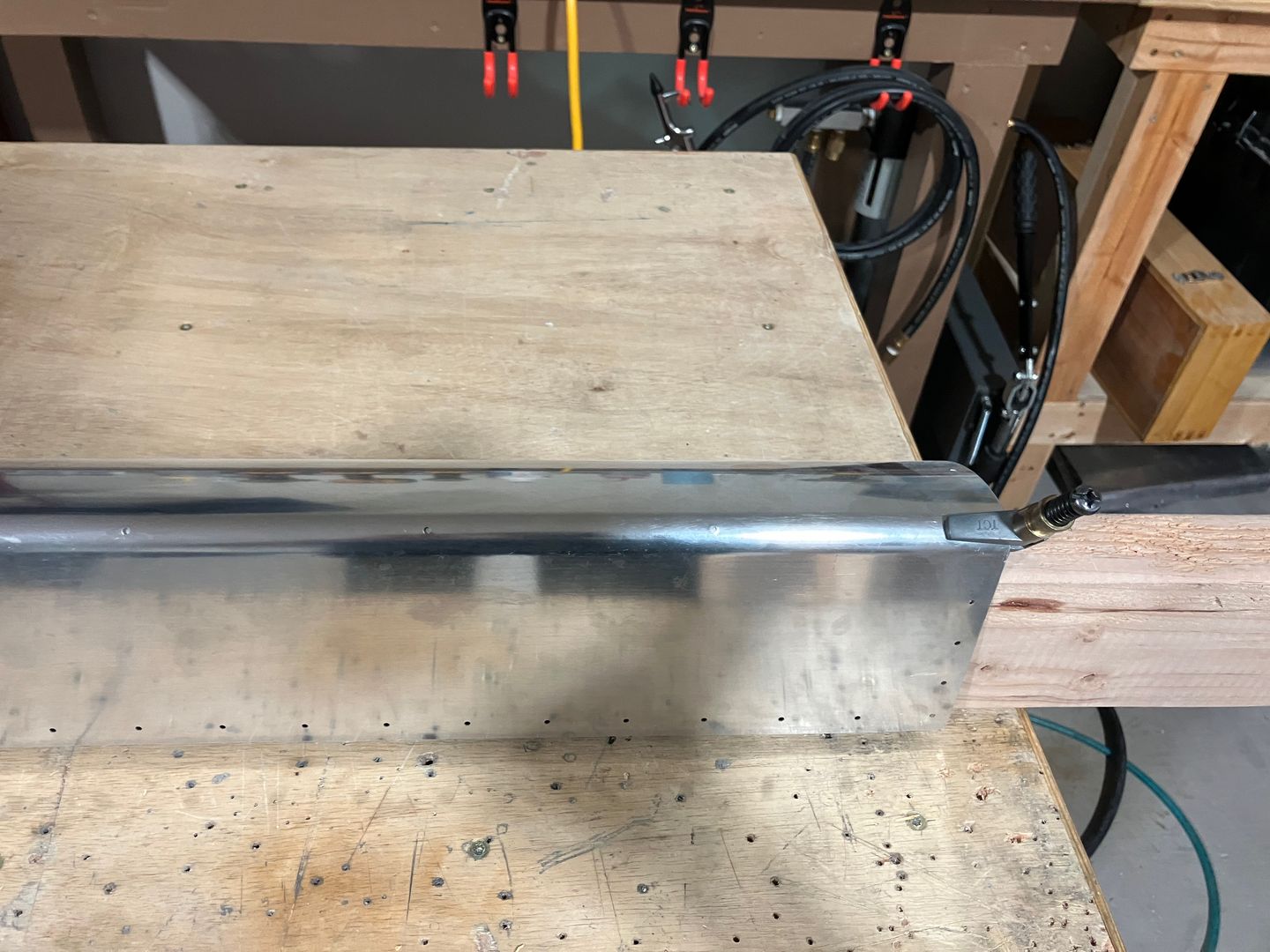 First, I clamped the pipe to the nose skin. I pushed the pipe as forward as possible.