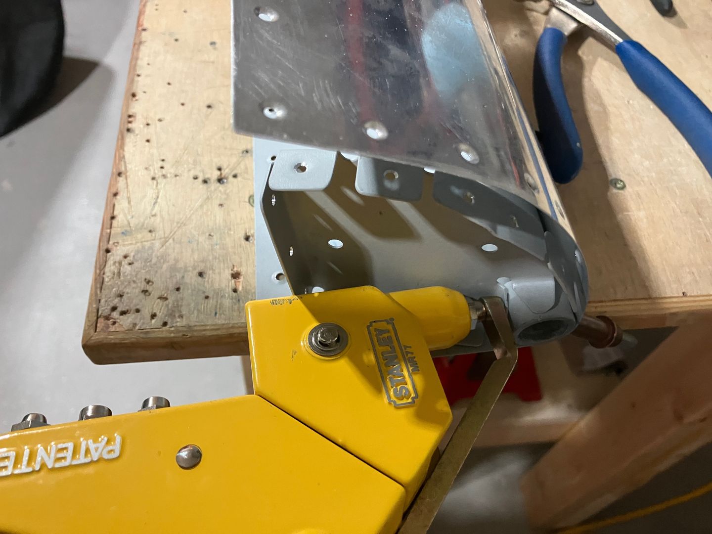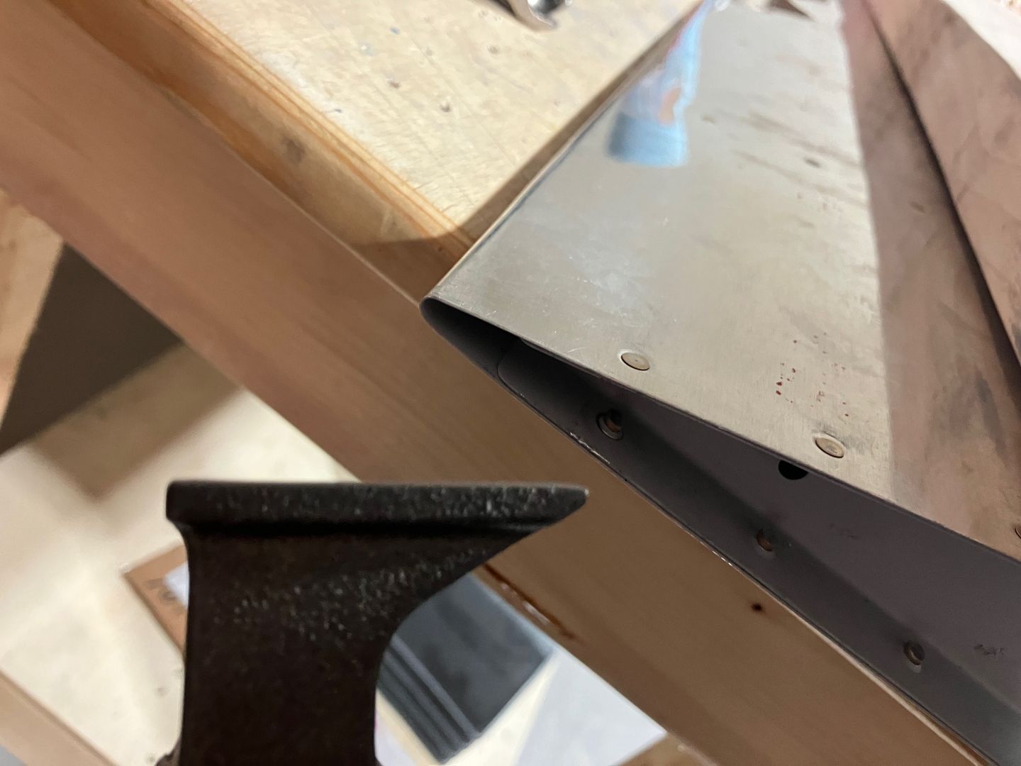 With the bar positioned like that it was very easy to set all the top rivets. I had to drill out only one rivet, and only because I didn't push it enough with the rivet gun.
