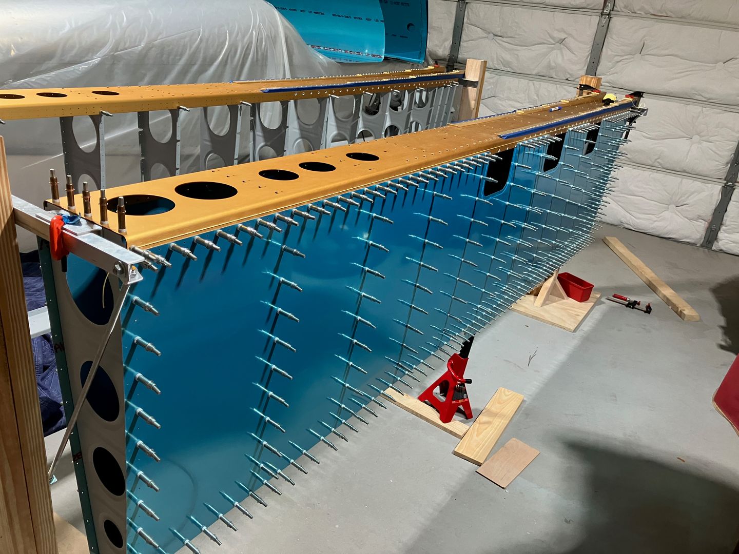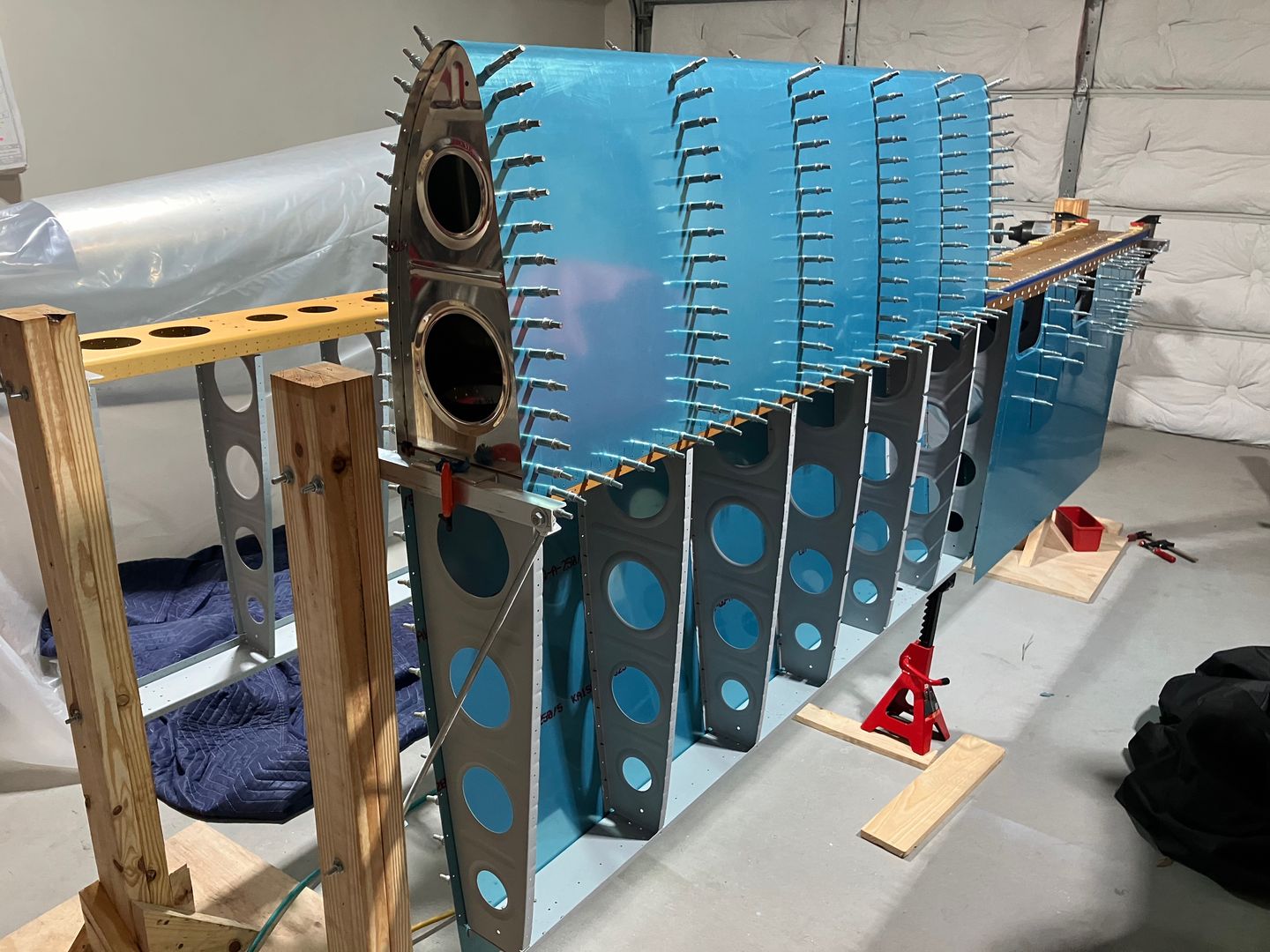 Then I clecoed these ribs and the skin to the main wing structure.