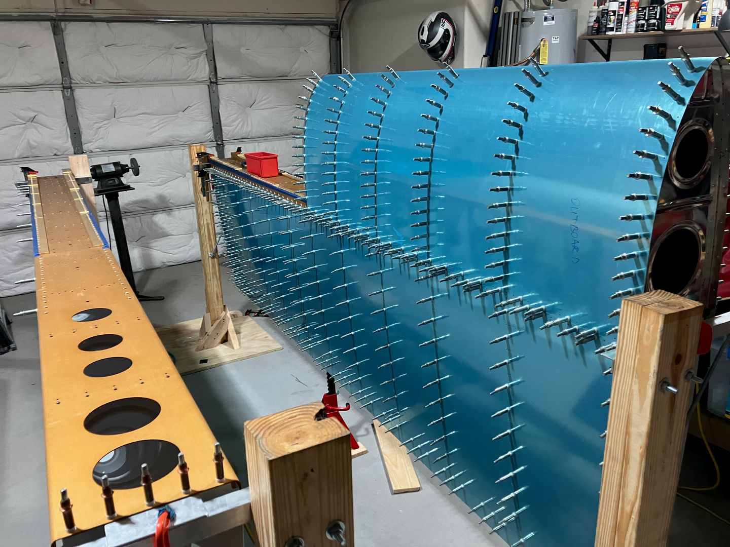 There was not much to report over the last month as I was waiting for the new leading edge ribs to arrive. During that time I drilled both the bottom and the top skins to the wing skeleton (which still took couple of hours).