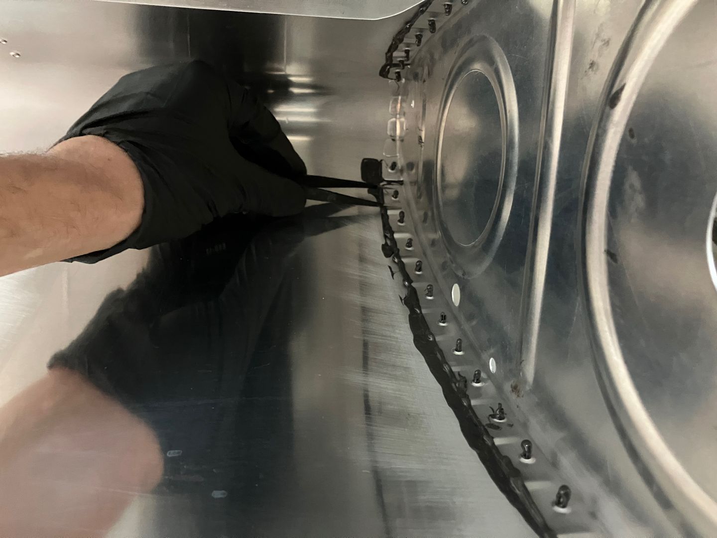 I clean the bucking bar and the rivet gun after each two rivets, then move on to the next ones.