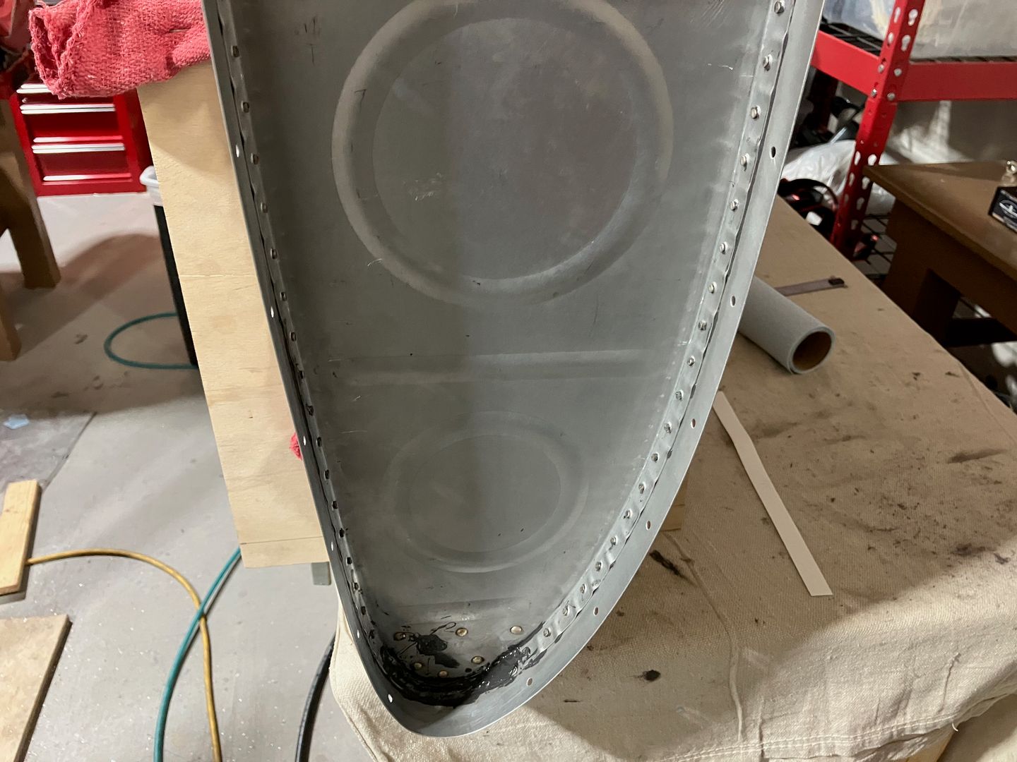 Since I had some sealant pot time left, I worked on riveting the reinforcement ring to the inboard rib.