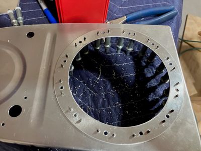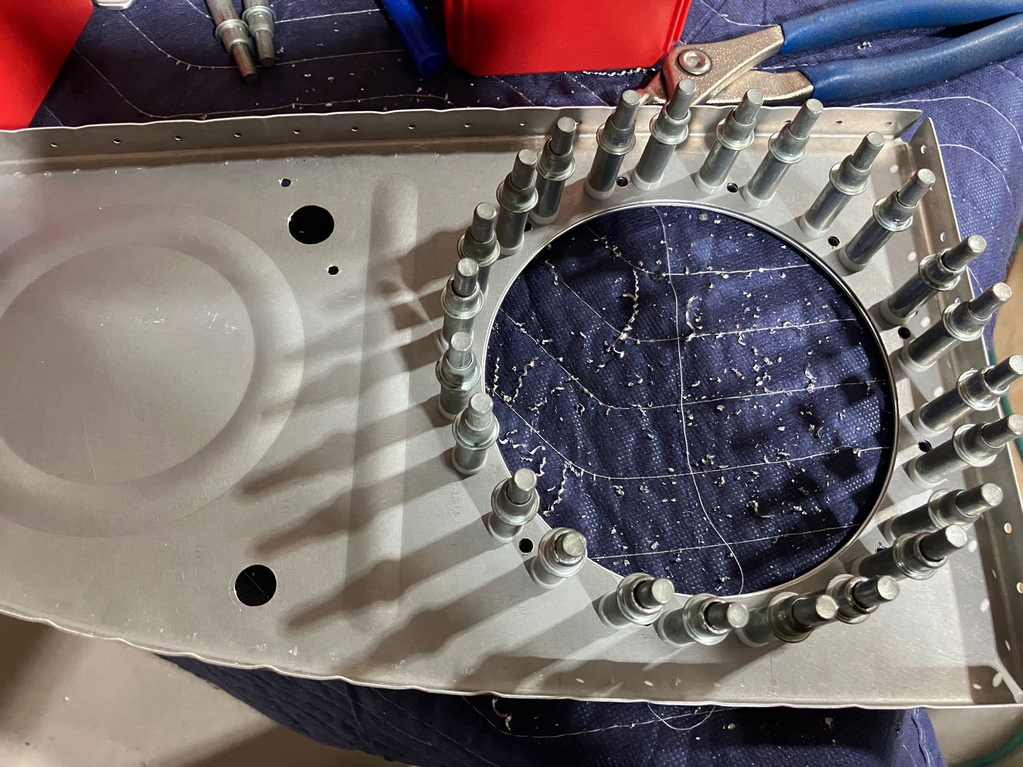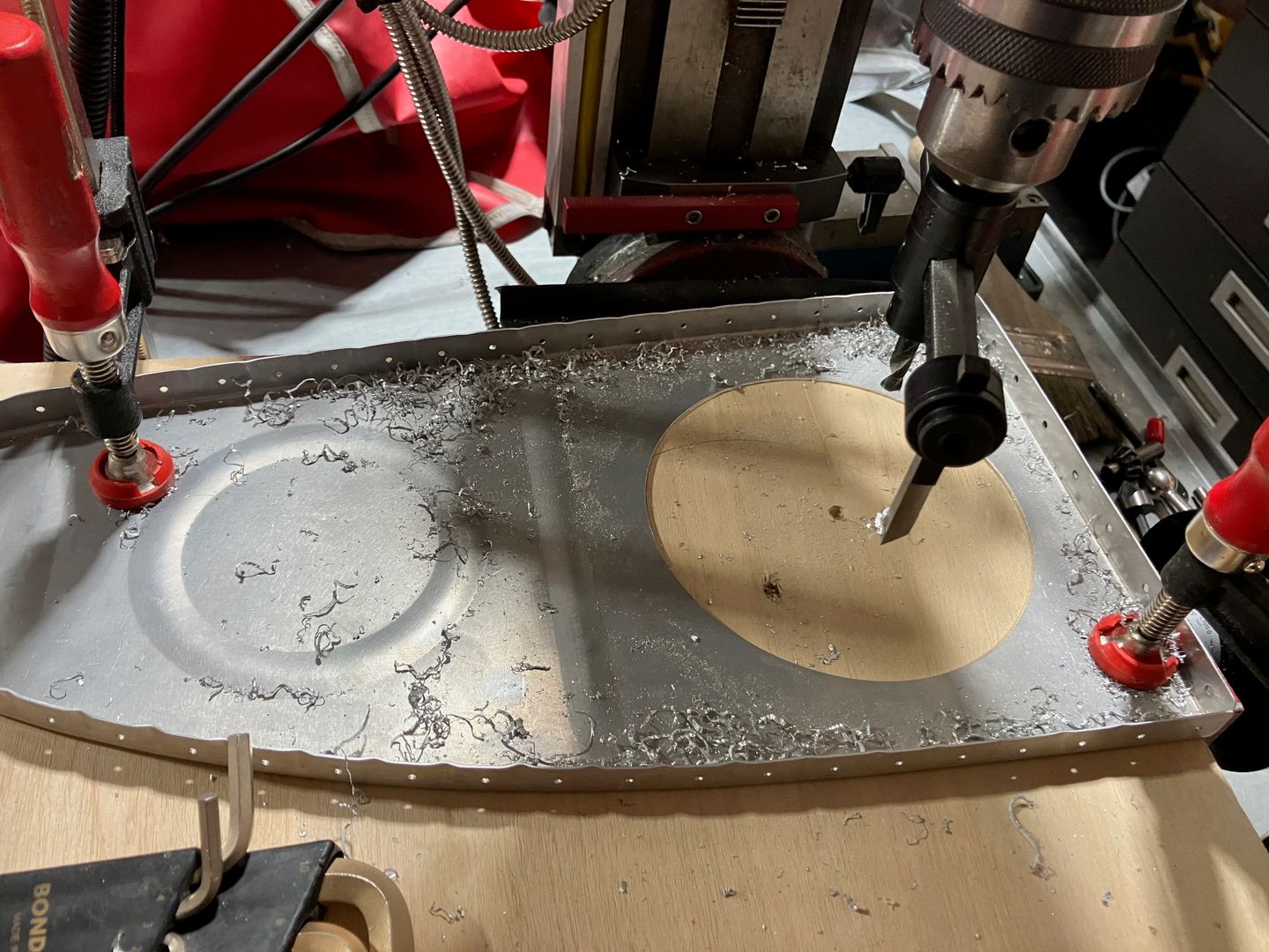 Cutting the access hole in the inboard rib and drilling holes for the reinforcement ring.
