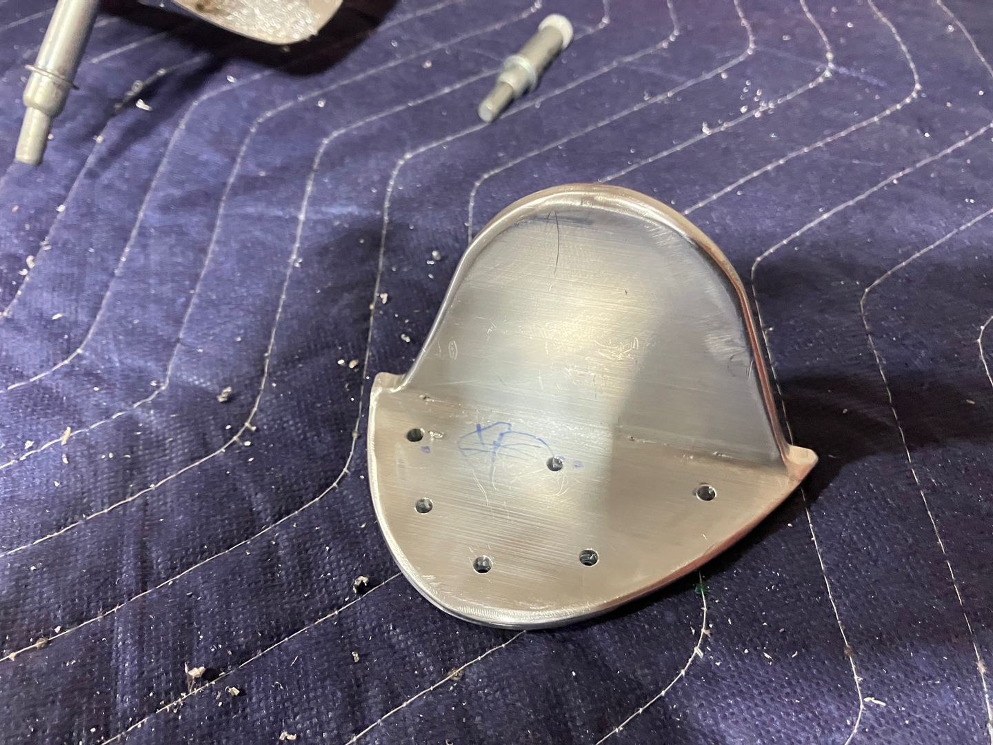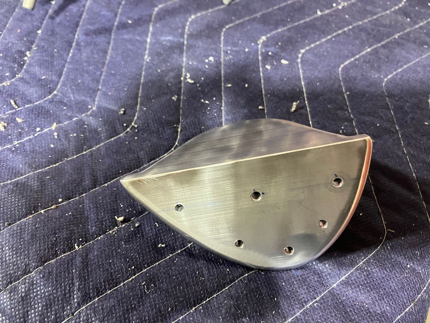 Smoothing all the edges and drilling the holes for the rivets.