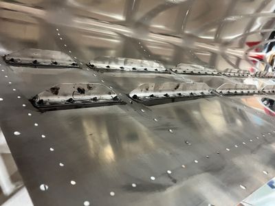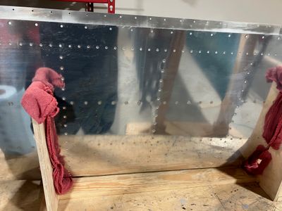 The next steps would be to rivet all the five inner ribs (five sessions), then rivet the outboard and the inboard ribs (two more sessions), then, finally, rivet the tank baffle.