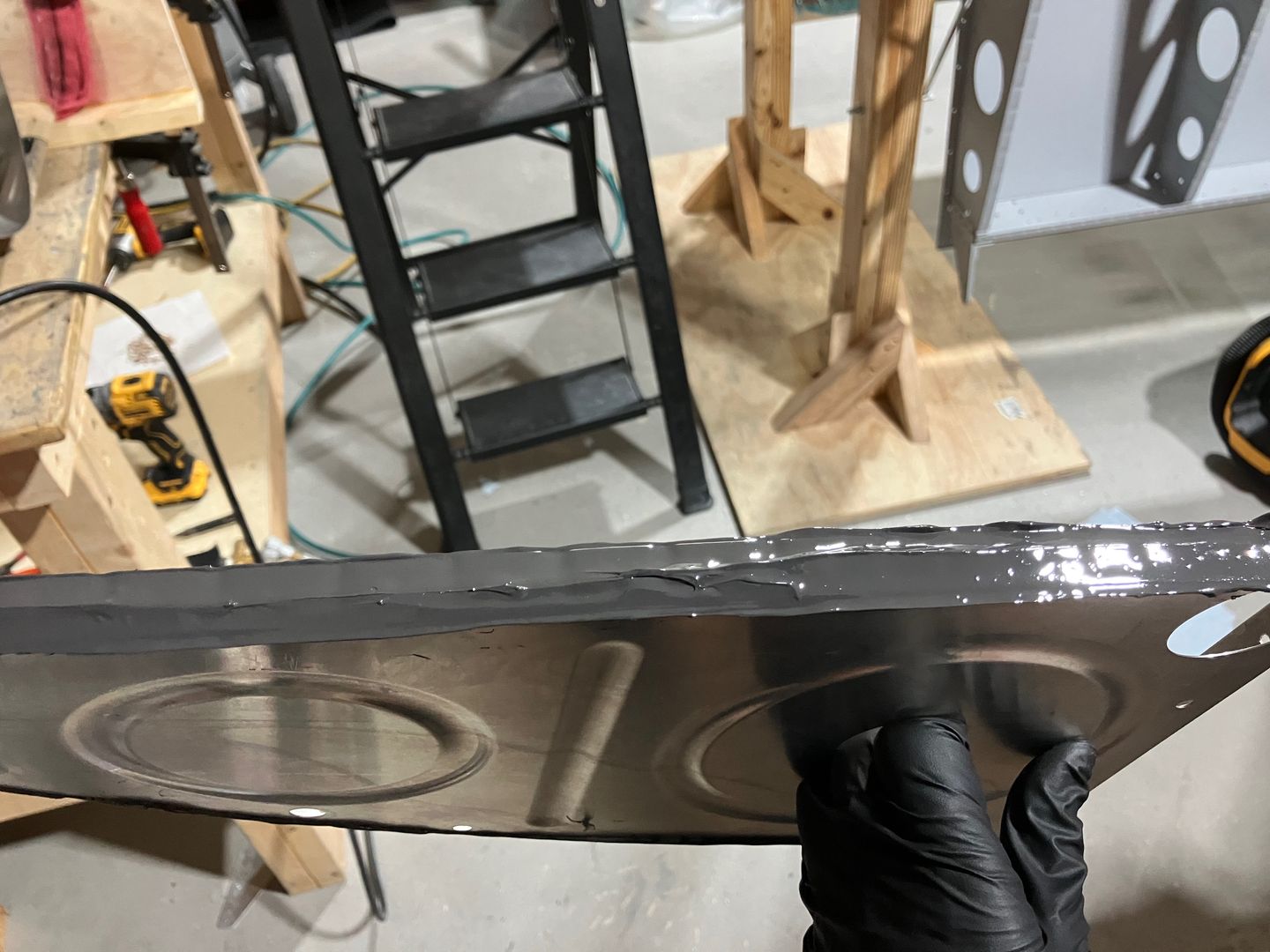 This is a rare moment where I wasn't afraid to take photos while putting the tank sealant on the rib.