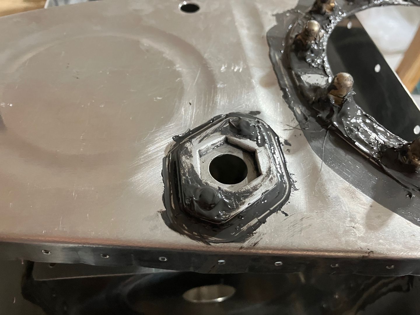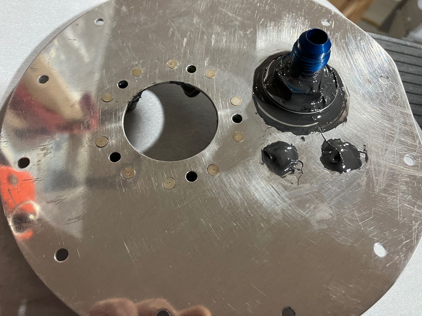 I mixed some sealant myself and worked on the cover plate. Also, I attached the anti-rotation bracket on the inboard rib (for the fuel return line).
