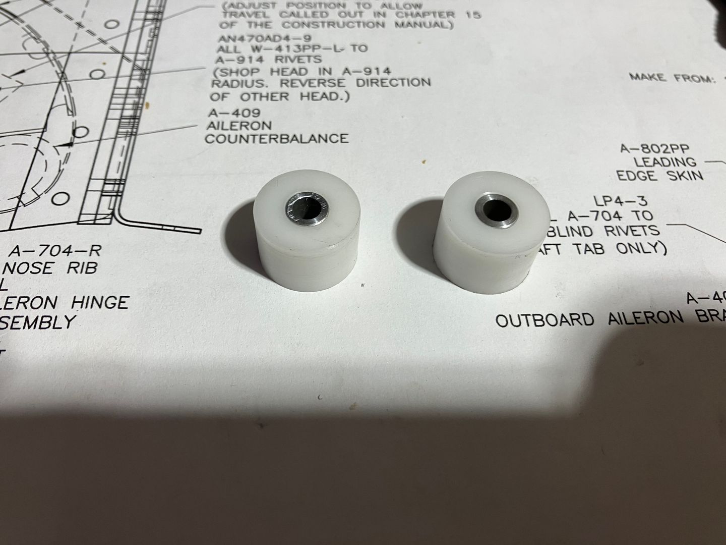 Then I used my lathe to machine a set of spacers for the ailerons mounting. Also, I machined a Delrin rod for the aileron stops -- a popular modification.