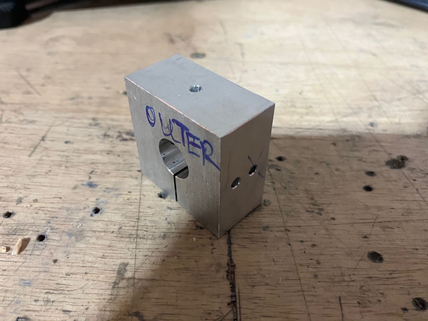 I changed the design of the jig while making it so there is one extra unused hole. If I was to design the jig again, I would make it so the tube can be clamped without removing the jig from the vise (maybe, by placing slot horizontally and using a screw to "clamp" the tubing). However, it worked fine even in the way I made it. Just a bit more time for each setup (because I would lose my X position on the mill).