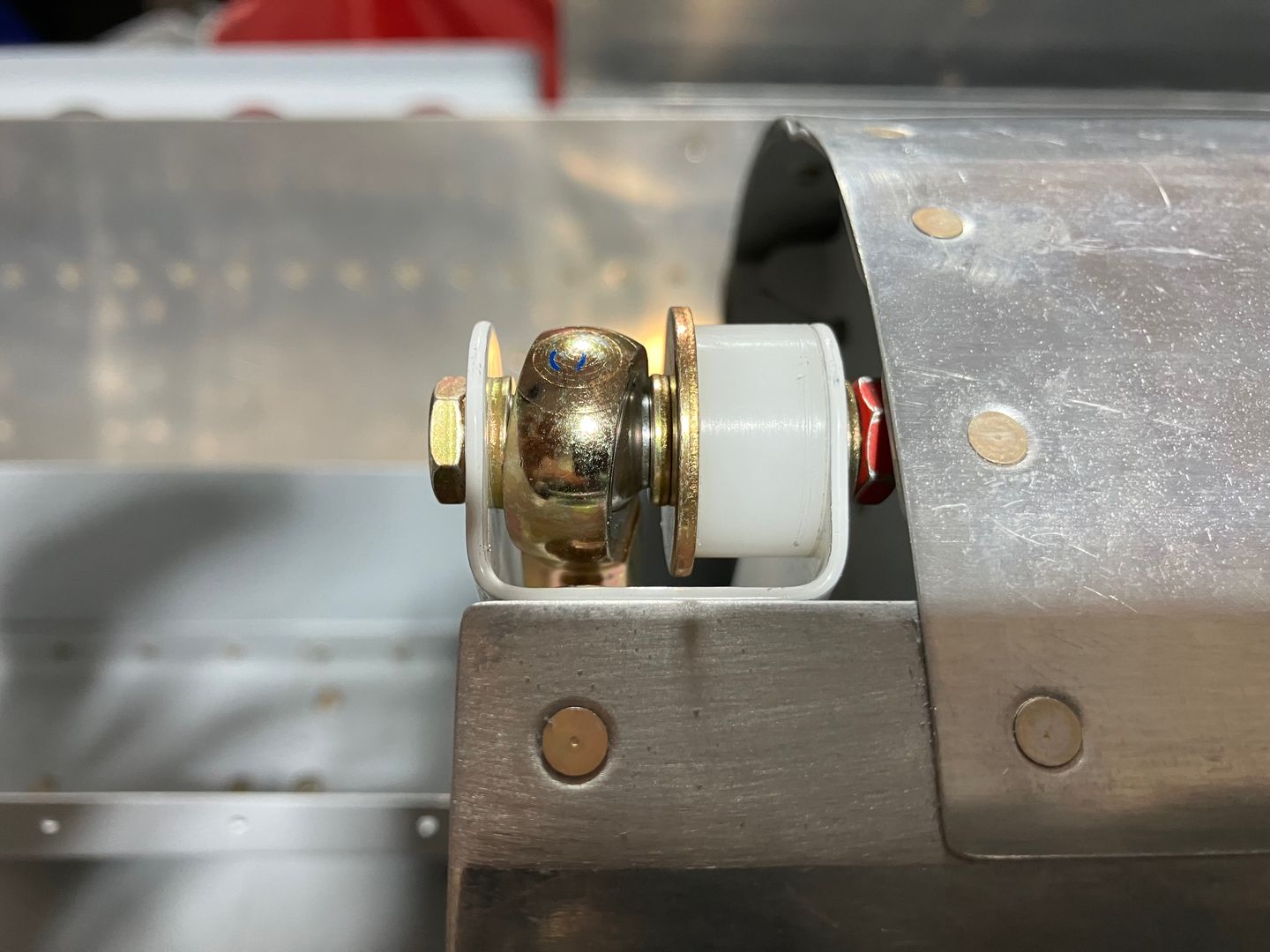 Here is the pushrod with two rivets inserted. Everything matched fine, and rivets don't interfere with each other.