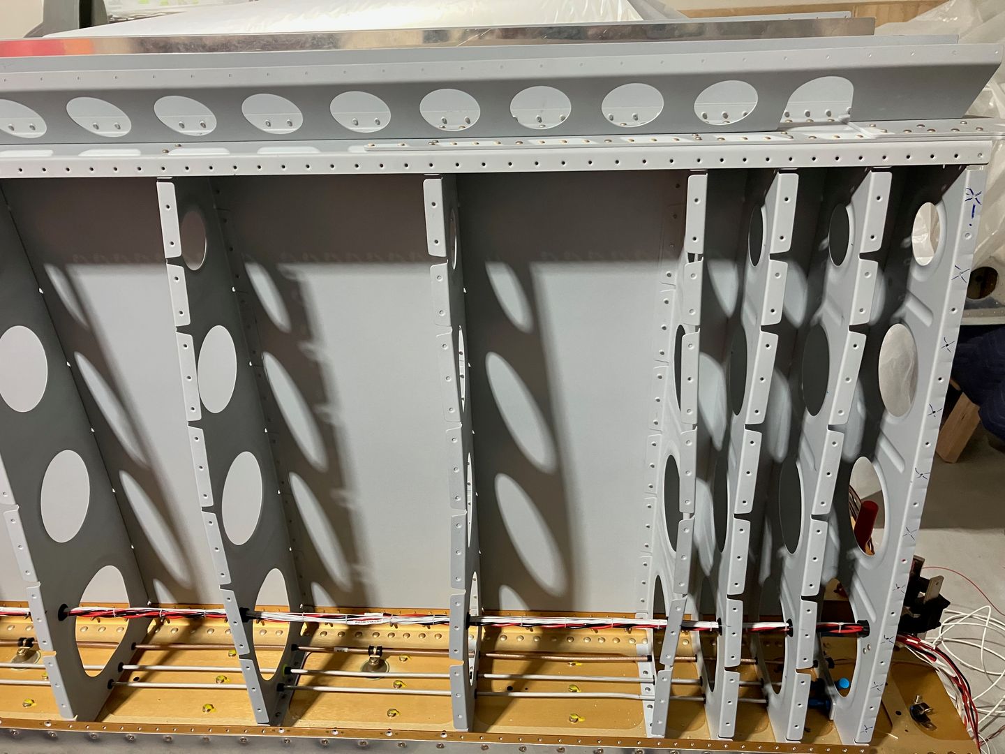 Small update on the left wing -- all the wires are fastened to corresponding fastening points.