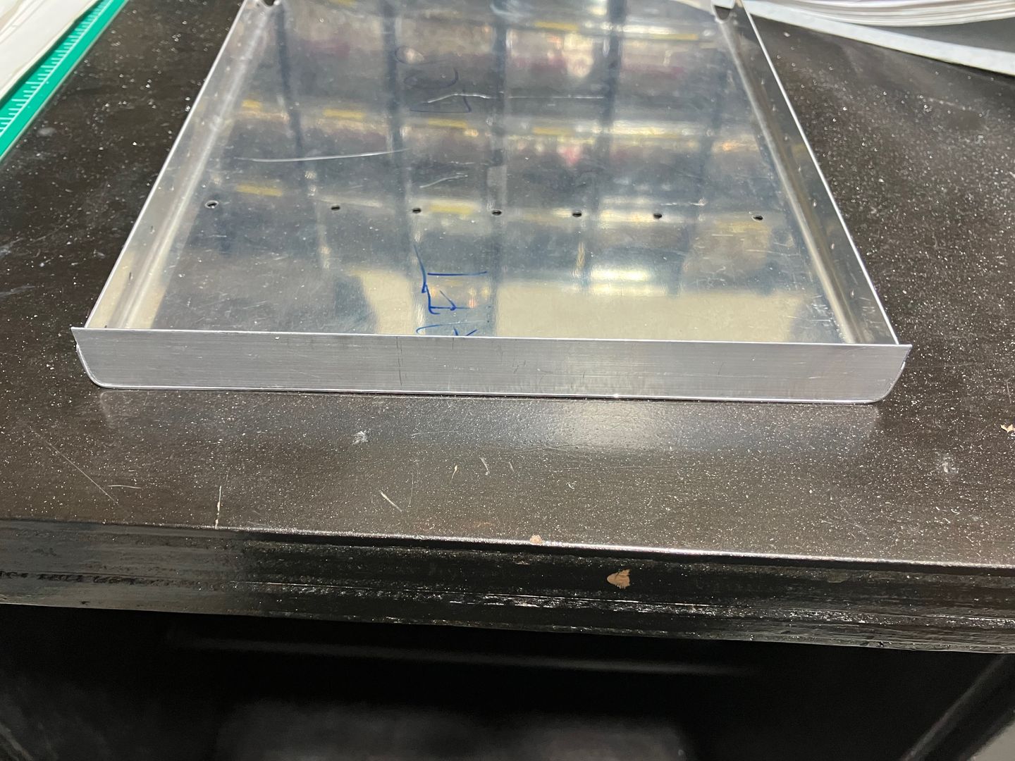 To support the radio stack in the middle, I want to create two "ribs" that will go between the subpanel and the panel frame. I wanted to use a flat sheet of 0.032" 2024-T3, but instead decided to use my scrap LCP (laser-cut part) tank baffles. I figured that the extra flanges won't hurt and will make the structure more rigid.