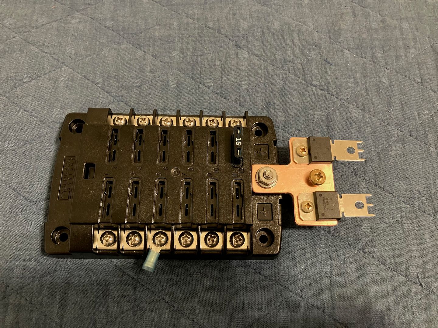This is Blue Sea 5029 fuse block I intend to use for my engine bus. All connections are screw terminals, which should make this block more robust.
