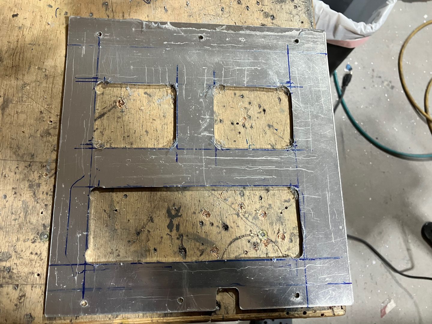 The panel marked for cutting. A bit of sloppy work, but doesn't matter.